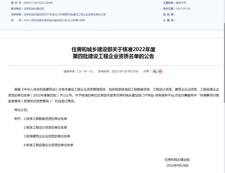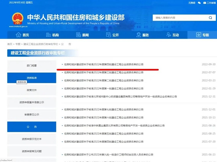 2022年9月30日,恒質(zhì)集團(tuán)順利取得中華人民共和國(guó)住房和城鄉(xiāng)建設(shè)部頒發(fā)的“公路工程施工總承包壹級(jí)資質(zhì)”!