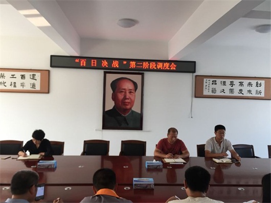 8月29日上午,在三樓會(huì)議室召開了“百日決戰(zhàn)”第二階段調(diào)度會(huì),會(huì)議由副總經(jīng)理李曉嶺主持,副總經(jīng)理張斌、王敬及相關(guān)科室負(fù)責(zé)人參加了會(huì)議, 會(huì)議對(duì)第一階段任務(wù)完成情況進(jìn)行了歸納總結(jié),并對(duì)第二階段任務(wù)進(jìn)行布署安排。